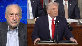 Nobel Prize-winning economist Joseph Stiglitz responds to Donald Trump’s State of the Union address on Tuesday, when the president repeatedly touted his tariffs as saving the country money and boosting the economy. Stiglitz says Trump’s “lies” about tariffs can’t erase the truth about how they have raised costs for most U.S. residents. “It is estimated the average family is paying somewhere between $1,000 and $1,700 in extra money because of the tariffs,” says Stiglitz.