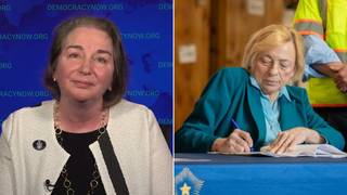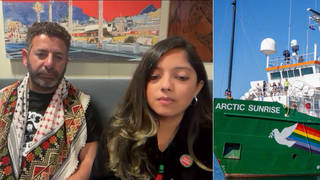 More than 70 vessels and over 1,000 participants from all over the world have joined a second Global Sumud Flotilla en route to Gaza in order to challenge Israel’s ongoing maritime blockade of aid. We speak to two participants aboard the Greenpeace ship, the Arctic Sunrise, which is providing technical support and accompanying the flotilla for part of the voyage in a show of solidarity.