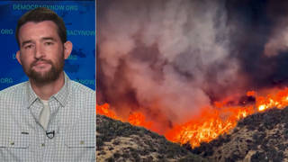 We speak with artist Shepard Fairey, best known for the Obama “Hope” poster, about the role of art in politics, the rise of fascism in the United States and more. Democracy Now!’s Amy Goodman spoke with Fairey in Los Angeles last week and toured his studio. Some of his recent artworks depict ICE agents with labels like “Domestic Terrorist,” used by Trump administration officials to describe protesters who oppose the administration’s immigration crackdown.