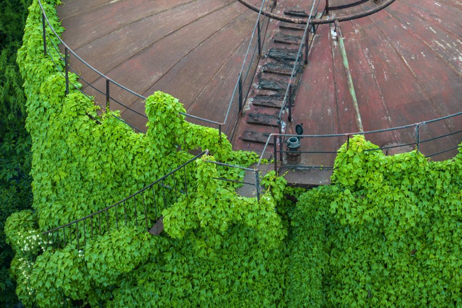 Abandoned oil tanks are covered by flourishing ivy plants in Huai an, Jiangsu province, China, seen on May 9, 2023.Artem Priakhin / SOPA Images / LightRocket / Getty